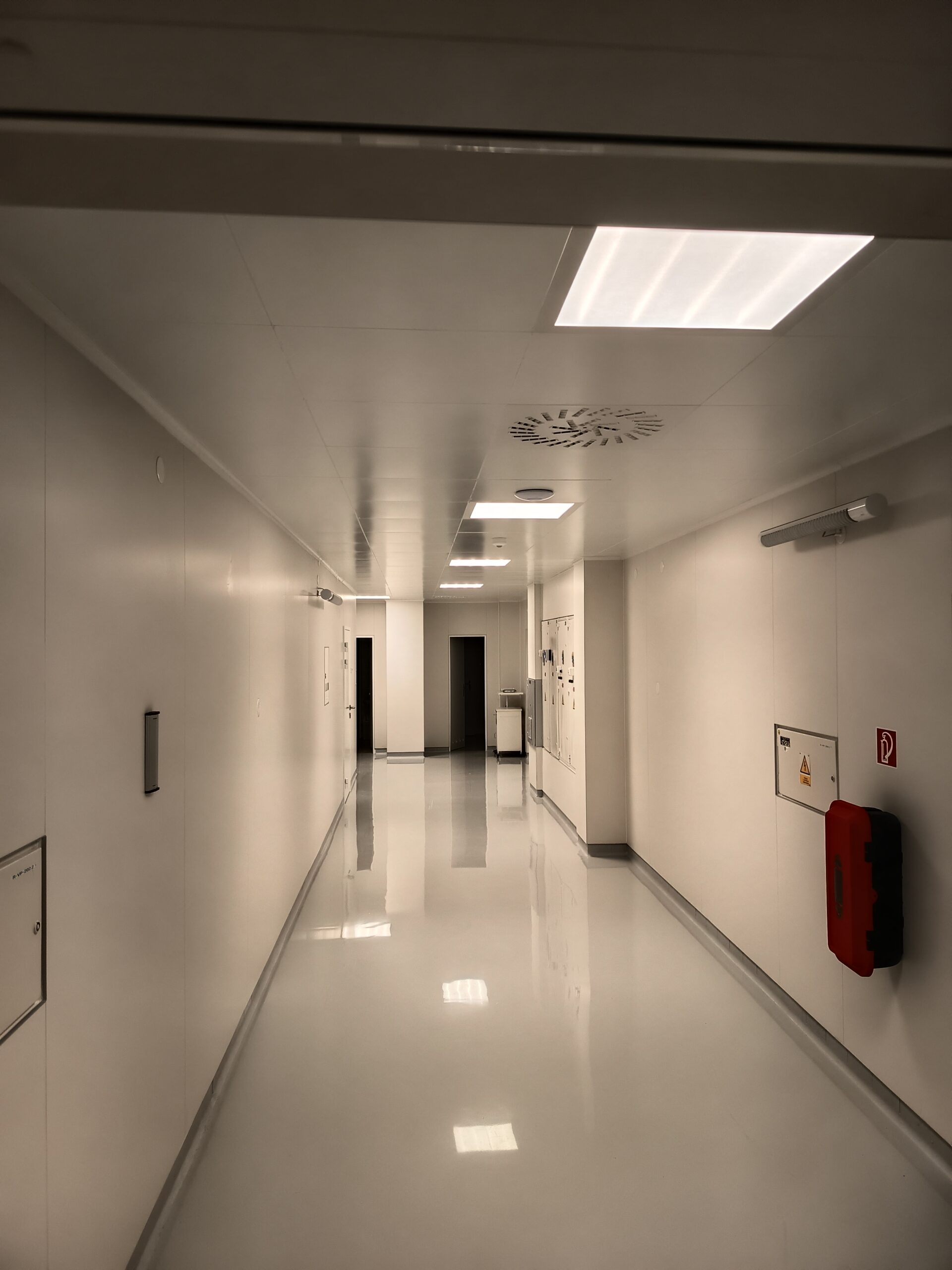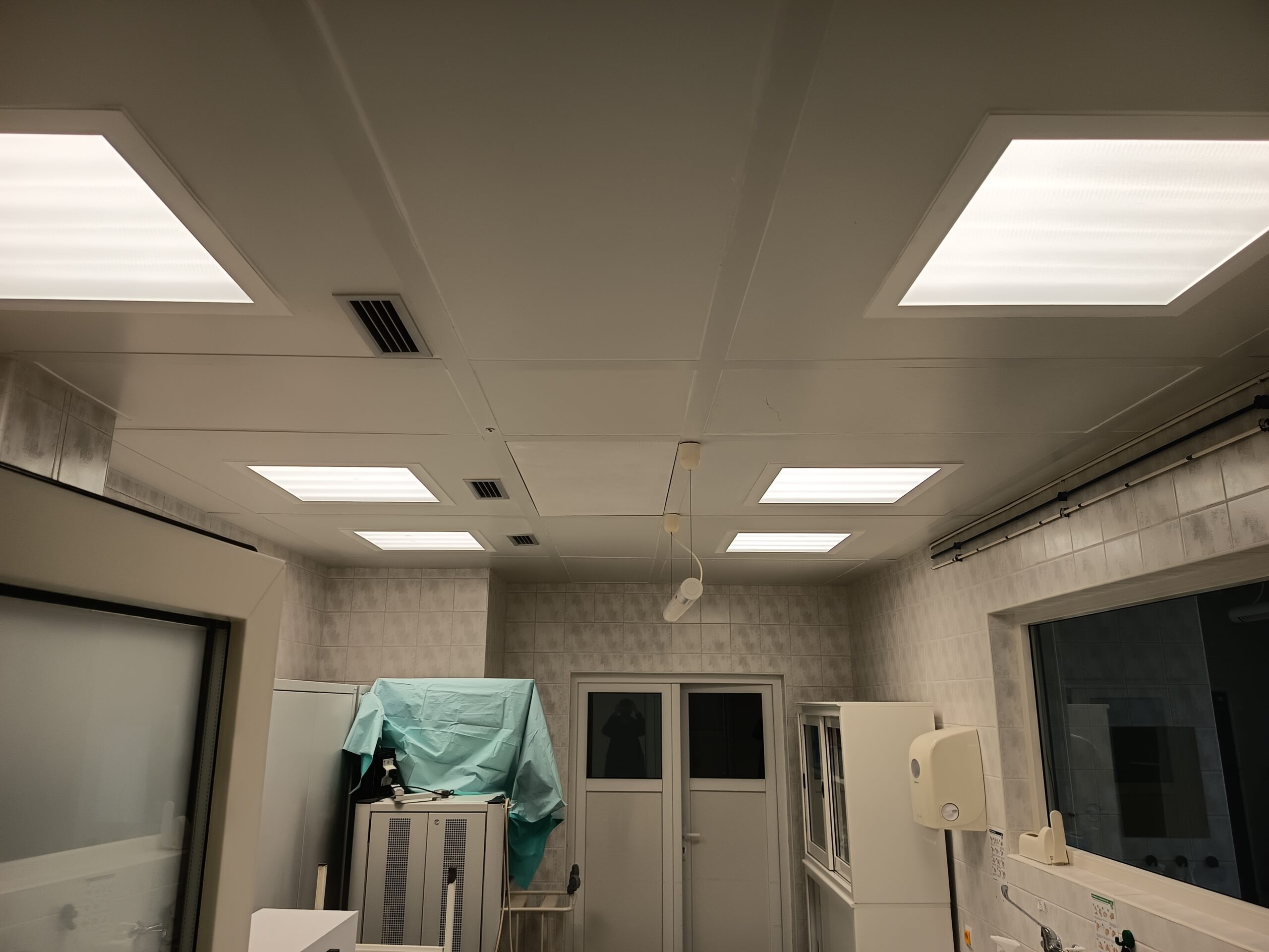 Požitie svietidiel Backlight CLEANROOM – v operačných sálach, séria MX – hygienické zázemie a svietidlá Backlight MP – čakárne, chodby